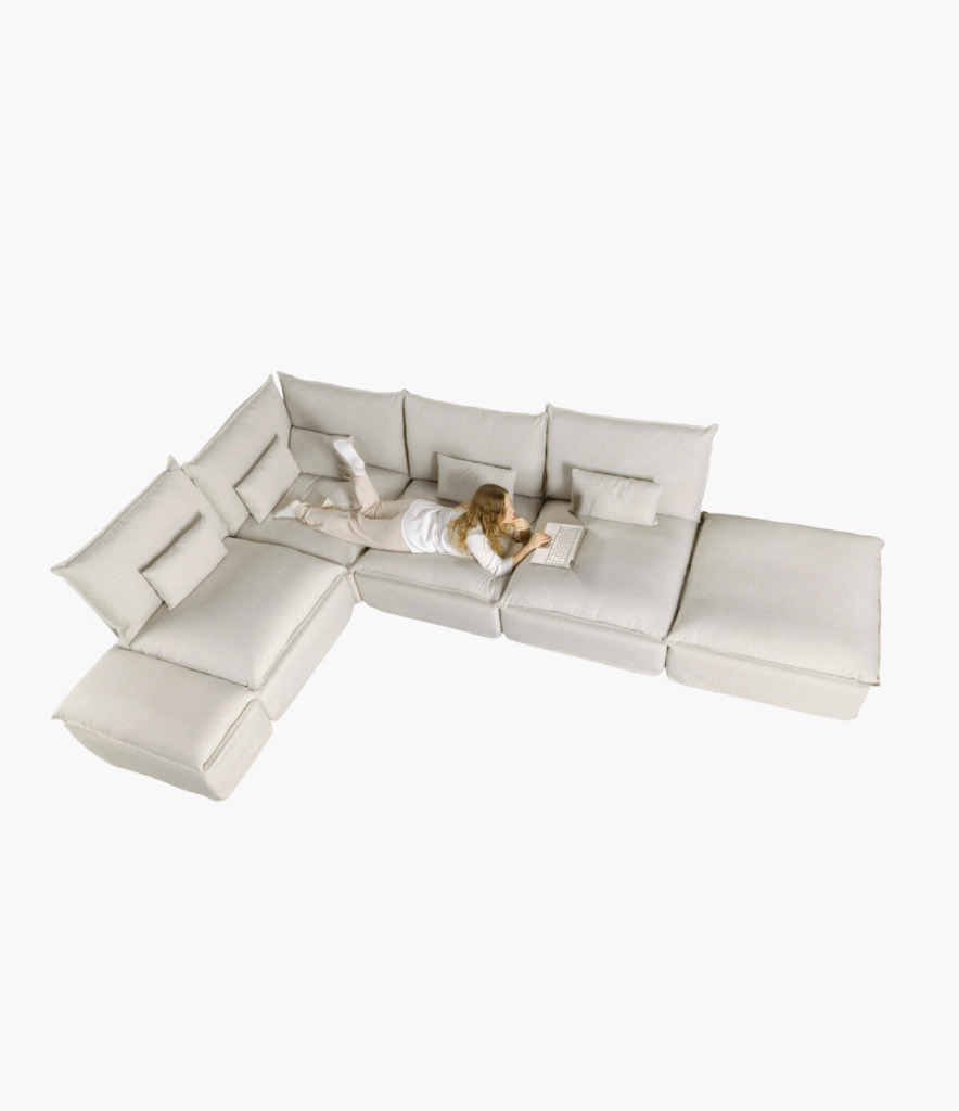 Con líneas suaves, comodidad envolvente y fabricación 100 % local, este modelo se adapta a cualquier espacio gracias a sus módulos combinables —desde sofás lineales hasta composiciones de gran formato.
